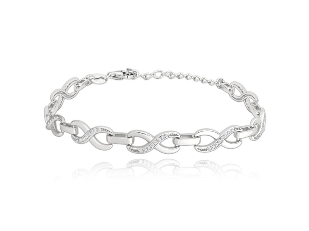 Stříbrný náramek MINET se symboly nekonečna je odrazem současných trendů. Zajímavě posazené kamínky z něj originální udělají doplněk pro každodenní nošení.