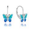 MINET Třpytivé dětské stříbrné náušnice MOTÝLCI s modrým opálem
