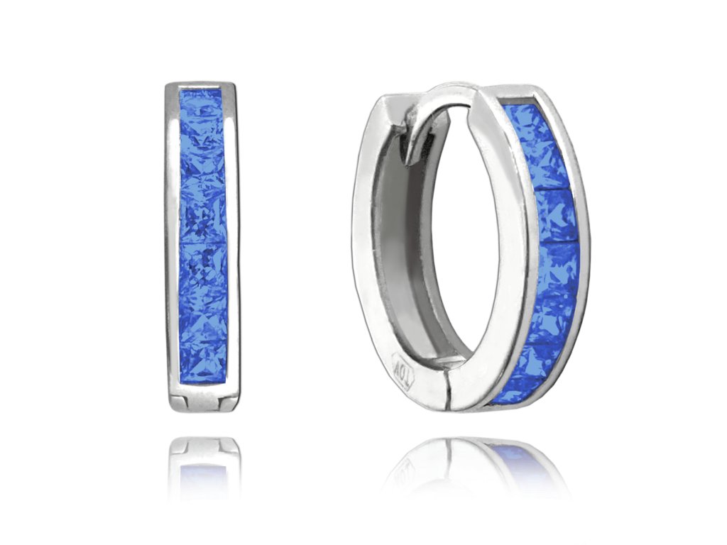 Tmavě modré náušnice kroužky jsou díky praktickému zapínání a tvaru pohodlné pro každodenní nošení. Modré zirkony se krásně třpytí a ozvláštníte jimi svůj outfit. Povrch stříbra je z rhodia, náušnice tedy neztratí svůj zářivý lesk a barvu.