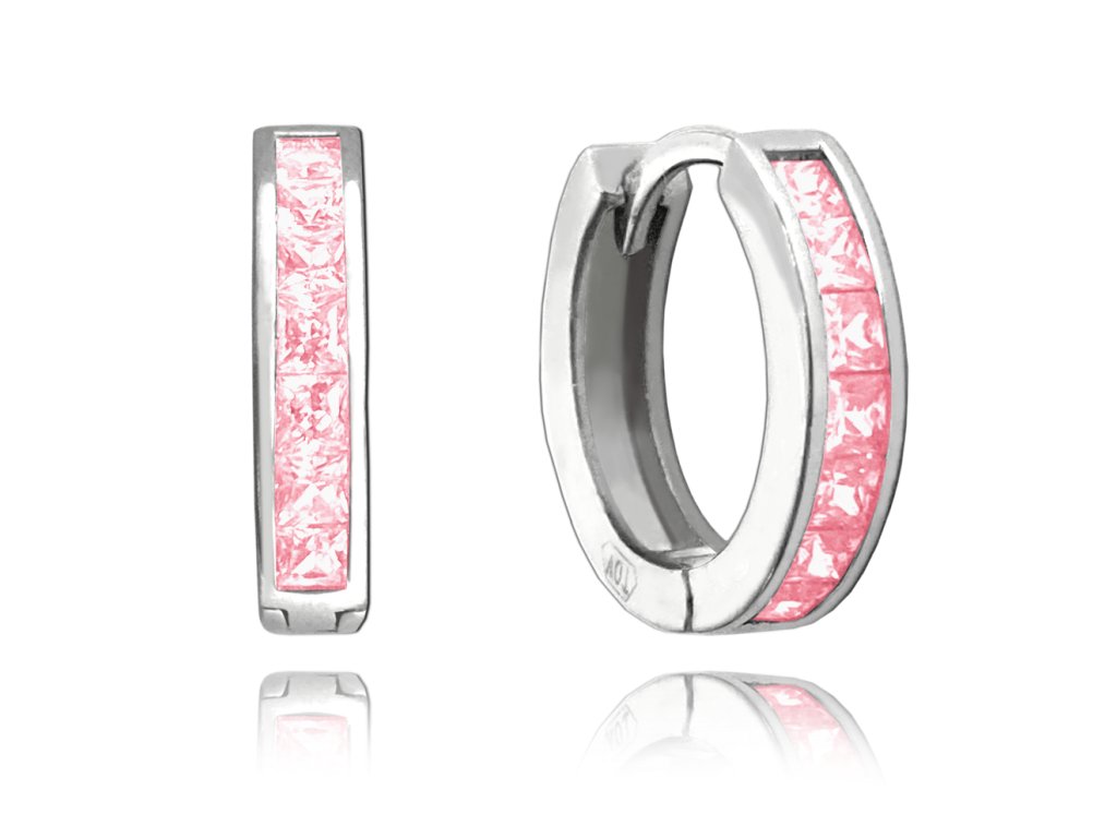 Světle růžové náušnice kroužky jsou díky praktickému zapínání a tvaru pohodlné pro každodenní nošení. Růžové zirkony se krásně třpytí a ozvláštníte jimi svůj outfit. Povrch stříbra je z rhodia, náušnice tedy neztratí svůj zářivý lesk a barvu.