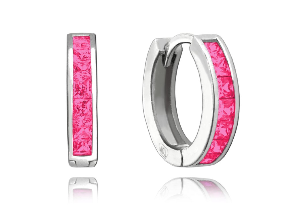 Tmavě růžové náušnice kroužky jsou díky praktickému zapínání a tvaru pohodlné pro každodenní nošení. Růžové zirkony se krásně třpytí a ozvláštníte jimi svůj outfit. Povrch stříbra je z rhodia, náušnice tedy neztratí svůj zářivý lesk a barvu.
