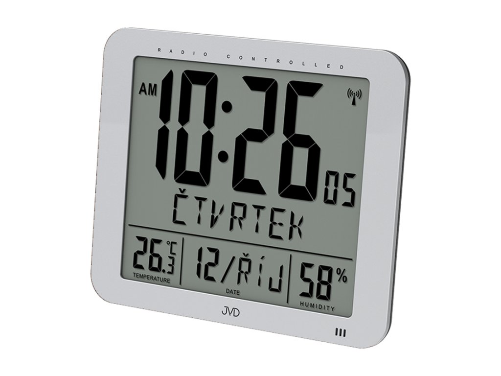 Rádiem řízené digitální hodiny s budíkem JVD stříbrné DH9335.1