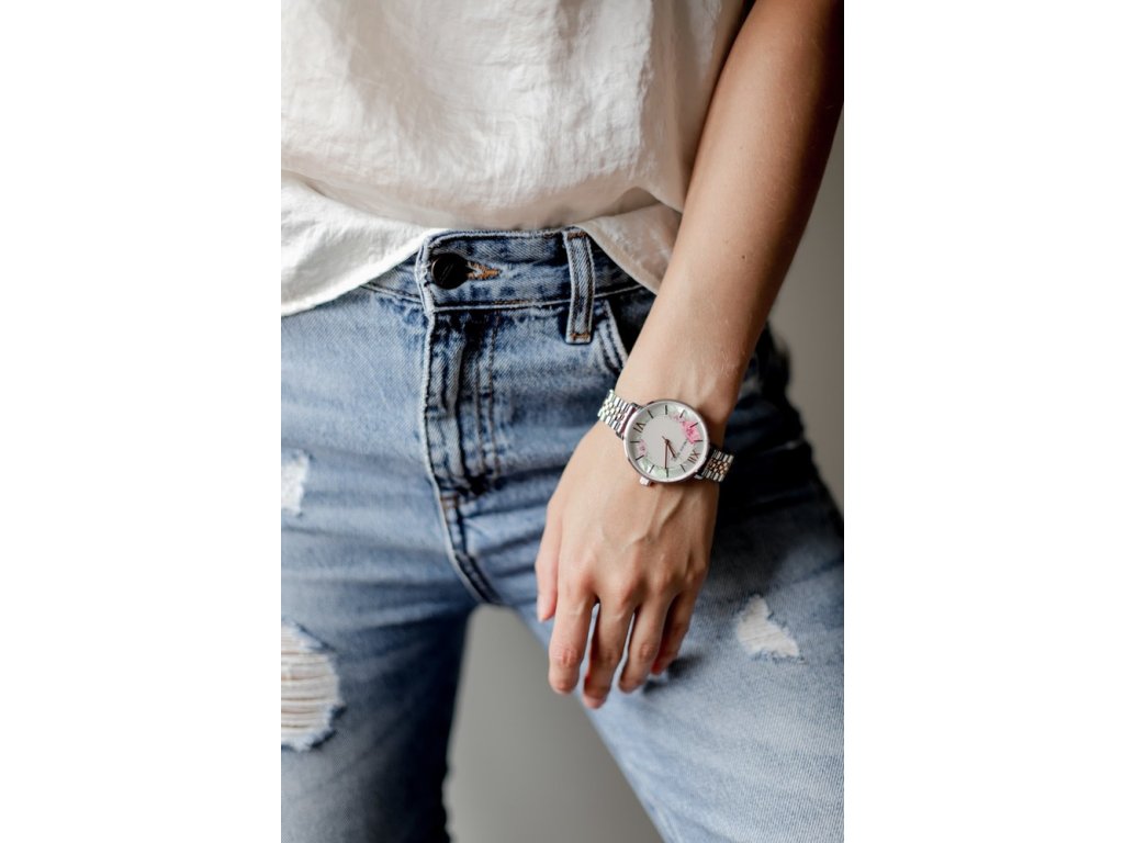 A detaily? S těmi jsme u těchto hodinek opravdu nešetřili! V květinách na číselníku naleznete něžné krystaly Swarovski a zadní stranu zdobí květinové gravírování. Tento model také nabízí možnost snadné výměny řemínku. V nabídce máme kvalitní kožené řemínky, kterými jejich majitelka jednoduše nahradí ten kovový během několika málo sekund.