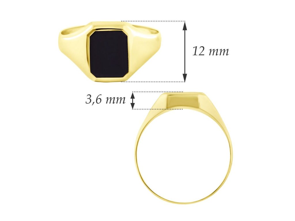 Elegantní pánský prsten ze žlutého zlata ryzosti 585/1000 (14 kt) zaujme výrazným kontrastem mezi teplým zlatem a hlubokým černým odstínem přírodního onyxu. Obdélníková hlava prstenu s hladkým minerálem dodává šperku maskulinní a nadčasový vzhled. Široká, hladce leštěná ramena zajišťují pohodlné nošení a stabilitu na ruce. Díky čistým liniím a výraznému designu je prsten vhodný pro každodenní nošení i slavnostní příležitosti.