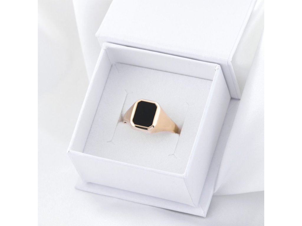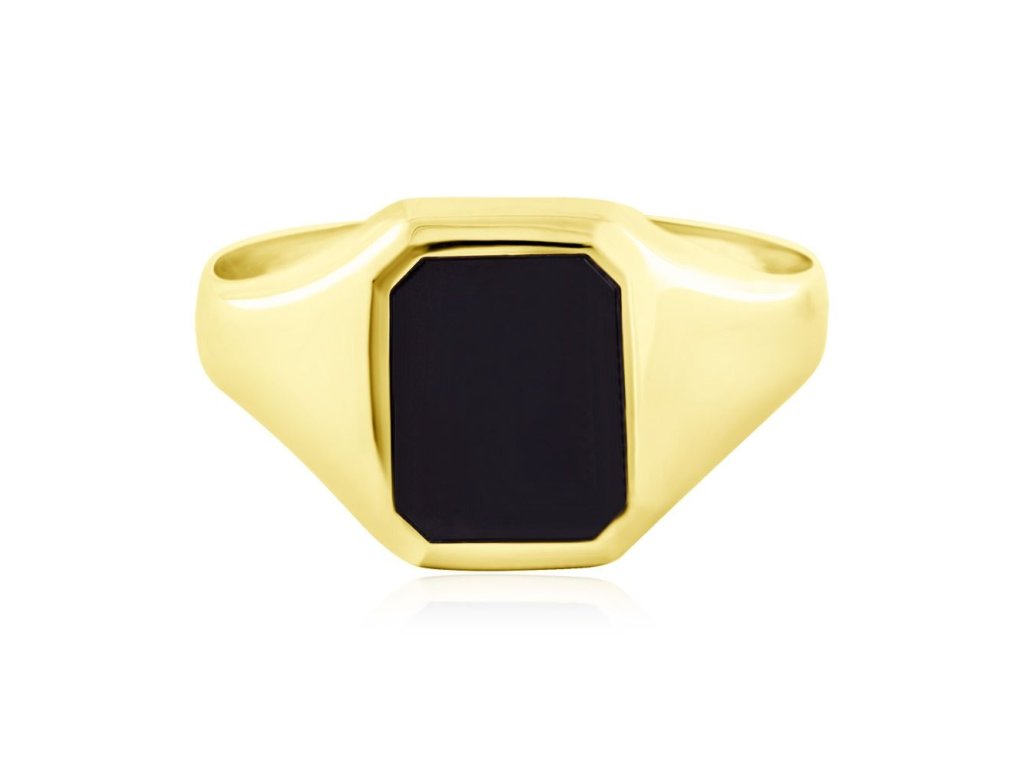 Zlatý pánský prsten s černým onyxem vel 62– žluté zlato 14kt